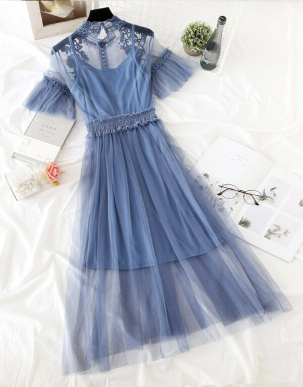 Cute A Line Tulle Lace Applique Dress Summer Dress P337