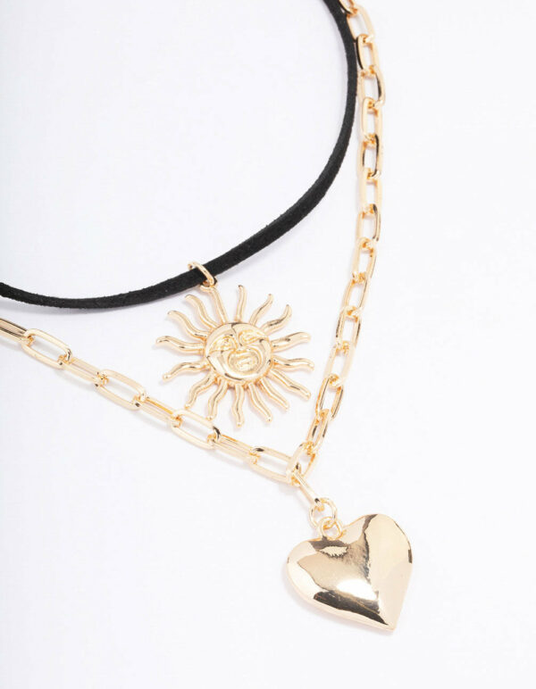 Heart Sun Cord Layered Necklace