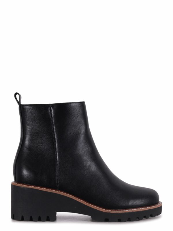 Wrapped in a luxe faux leather finish, these Chelsea boots feature a full length side-zip and boast a 6cm wedge sole for a style that’s chic and sophisticated.