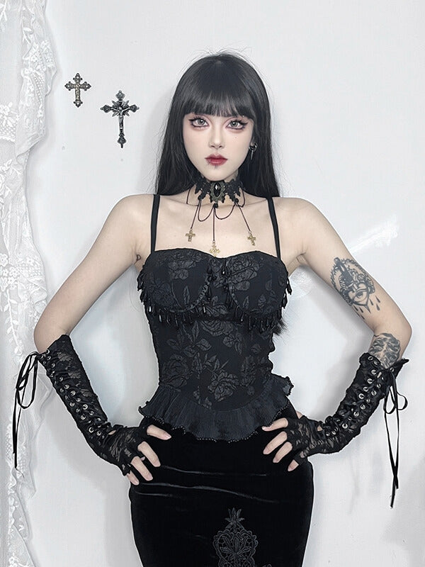 Vintage jacquard beads pendant cami