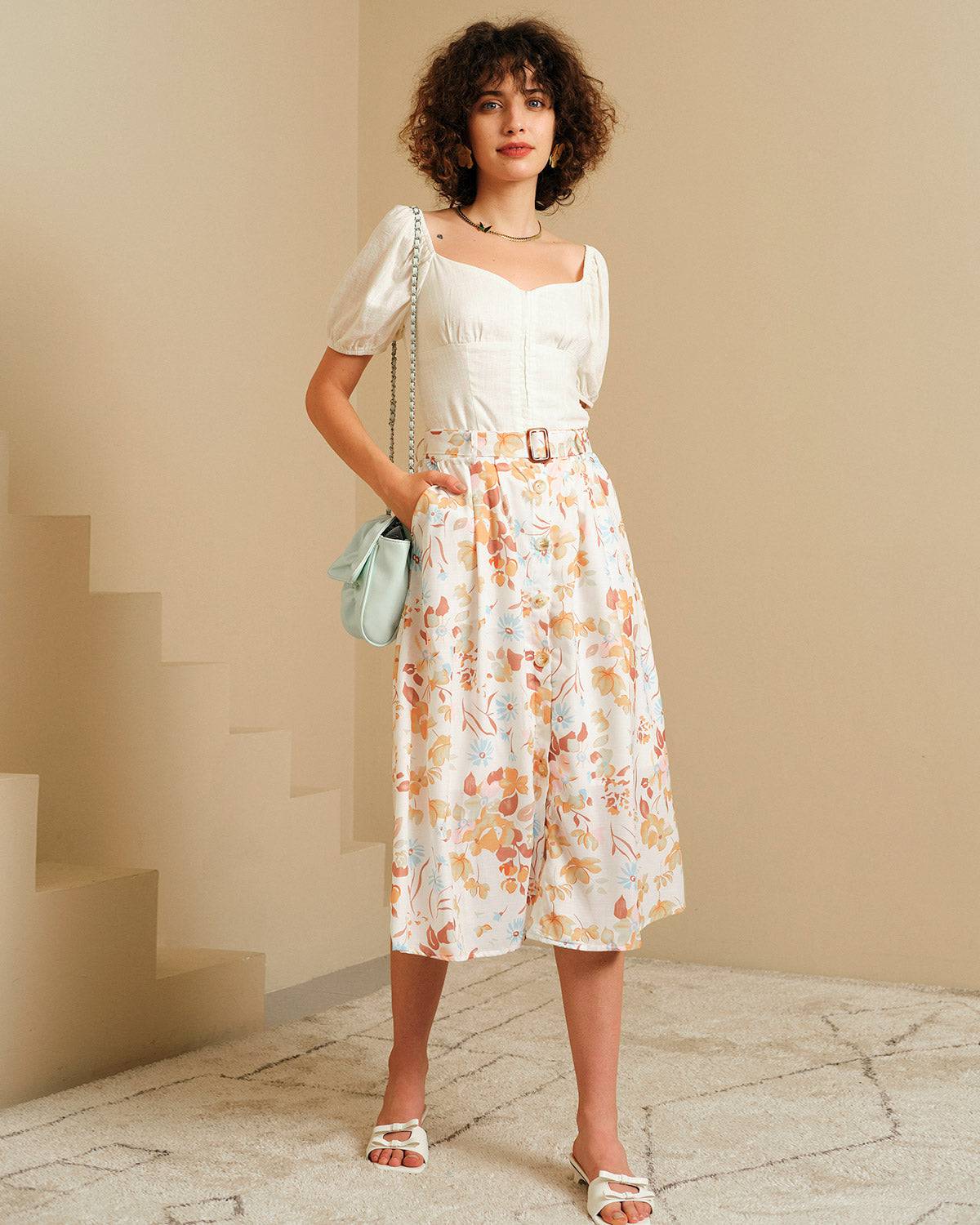 The Button-Up Belted Floral Skirt
