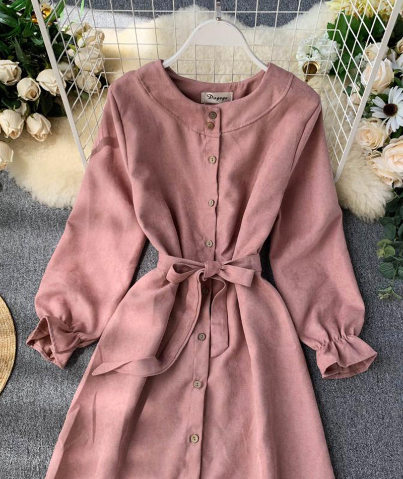 Long Sleeve Ruffle Hem Button Down Dress P307