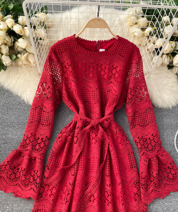 Cute Lace Long Sleeve Dress Lace Dress P318