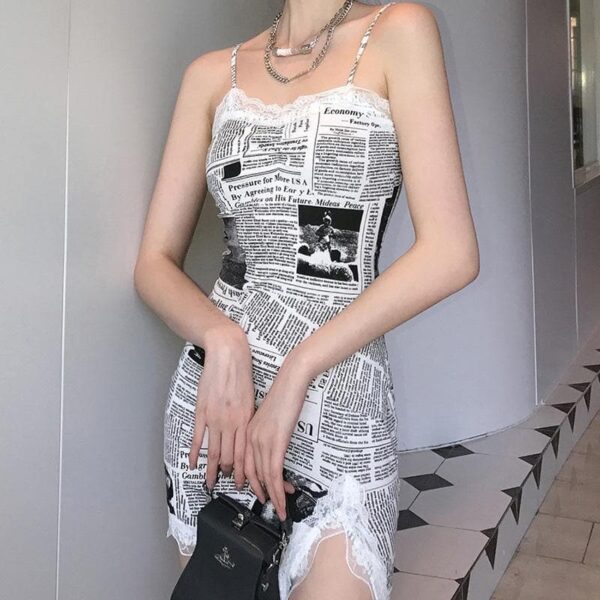 Be the first to review “Hem lace newspaper print slit cami dress”