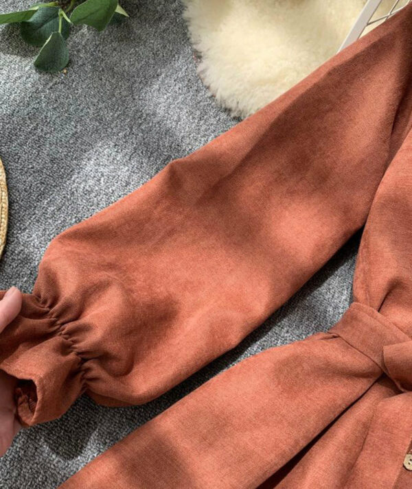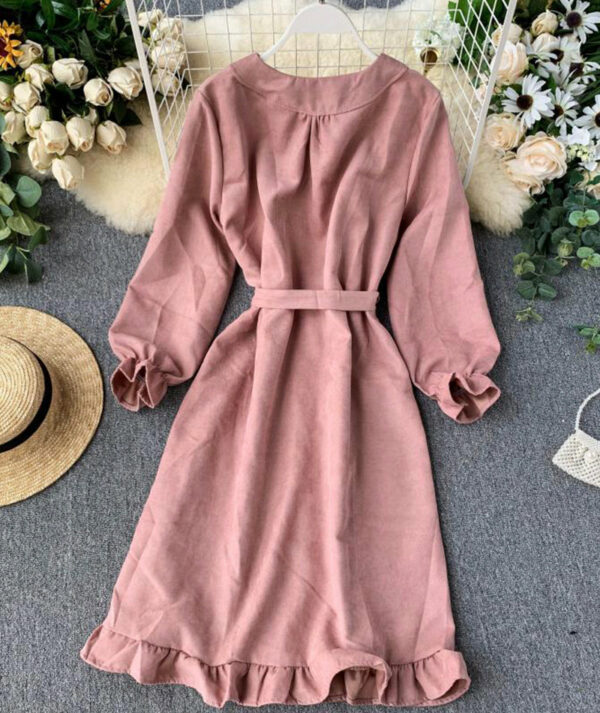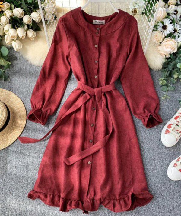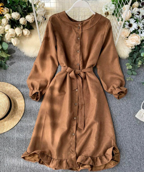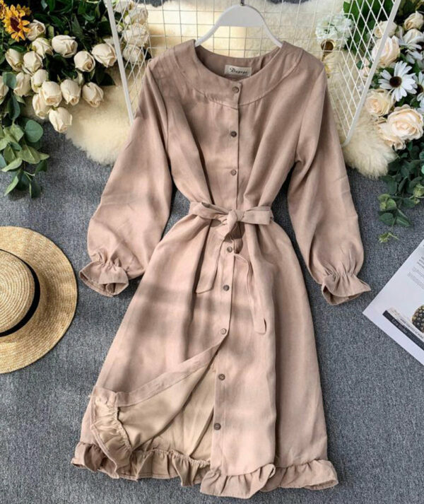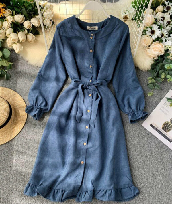Long Sleeve Ruffle Hem Button Down Dress P307